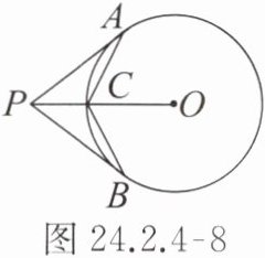 4. 如图 24.2.4 - 8,$ PA $,$ PB $ 分别切 $ \odot O $ 于 $ A $,$ B $ 两点,连接 $ PO $ 与 $ \odot O $ 相交于点 $ C $,连接 $ AC $,$ BC $。
