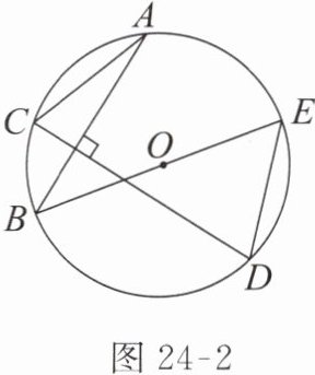 1. 如图24-2,$AB$,$CD$ 是 $\odot O$ 的弦,$AB \perp CD$,$BE$ 是 $\odot O$ 的直径。若 $AC = 3$,则 $DE$ 的长为
