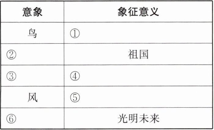 1. 阅读全诗,找出诗中的意象,并体会其象征意义。完成下面的表格。