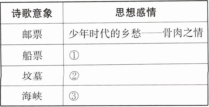 ①青年时代的乡愁——恋人之情 ②中年时代的乡愁——生死之情 ③晚年时代的乡愁——故国之情
