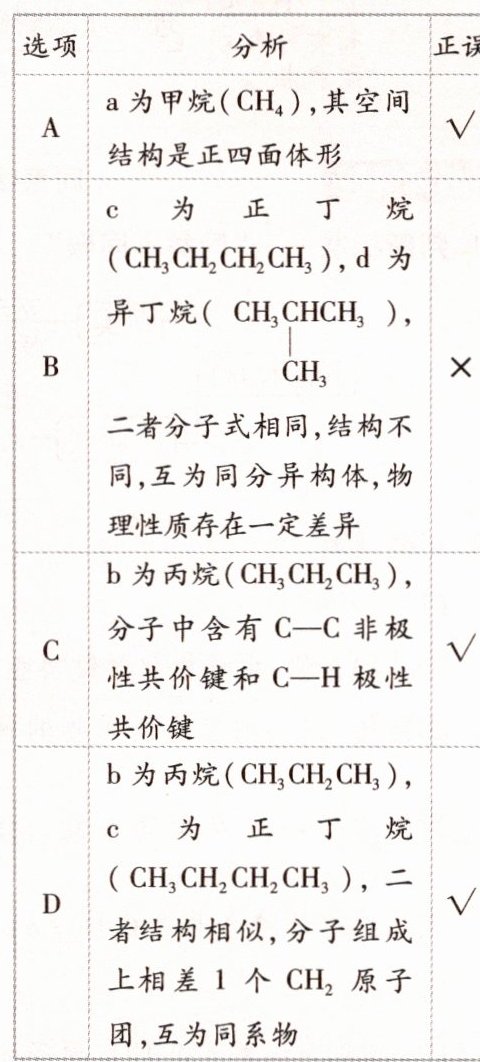 例3-17 (2024北京师范大学附属中学期中)如图表示四种烷烃分子,下列有关说法错误的是