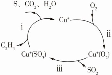 2.B 分析题图可知,“入环”的$C_2H_4$、$O_2$、$SO_2$为反应物,“出环”的S、$CO_2$、$H_2O$为生成物,则该过程的总反应为$C_2H_4+O_2+2SO_2\xrightarrow{Cu^+}2S+2CO_2+2H_2O$。