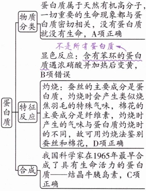 A.蛋白质属于天然有机高分子,没有蛋白质就没有生命