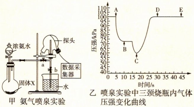 烧瓶内气体压强变化曲线如图乙所示,则E点