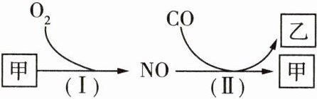 D项:反应(II)为2NO + 2CO$\stackrel{催化剂}{=\!=\!=}$N₂ + 2CO₂,反应前后N元素的化合价降低,NO是氧化剂(√)