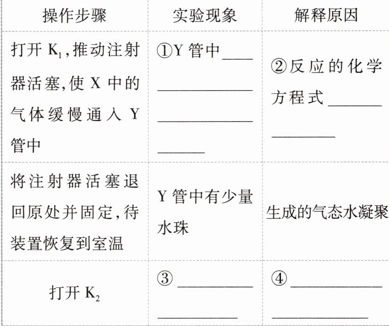④反应后生成的气态水凝聚,气体分子数减少,Y管中压强小于外界大气压
