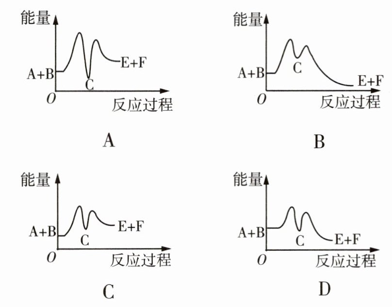 B−→C(放热反应),②C−→E+F(吸热反应)。下列能正确表示总反应过程中能量变化的是