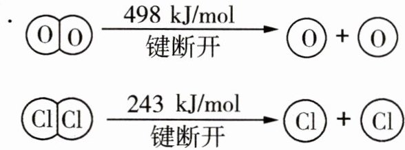 与断开1molH−Cl所需吸收的能量相差34kJ。