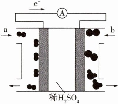 (2)由题图中电子流向可知,a极为负极,通入H2,b极为正极,通入O2。电解质溶液为酸性溶液,负极反应式为H2−