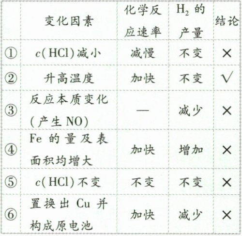 变化因素 化应学速率反H产量的结论