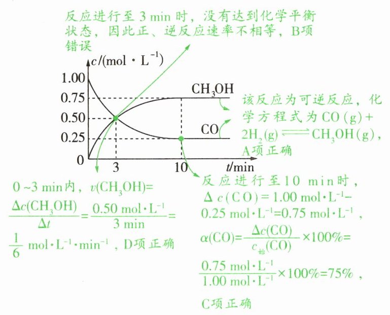 C.反应进行至10min时,C0的转化率为75%