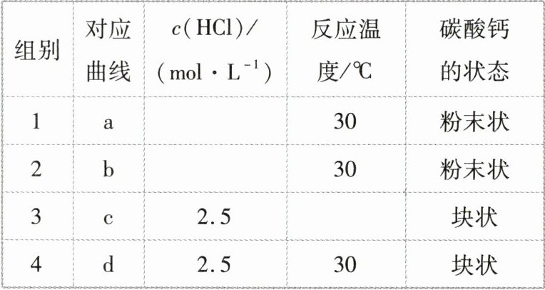 [变载体][教材改编题.来源于教材P50第9题]等质量的CaCO3与过量的盐酸在不同的实验条件下进