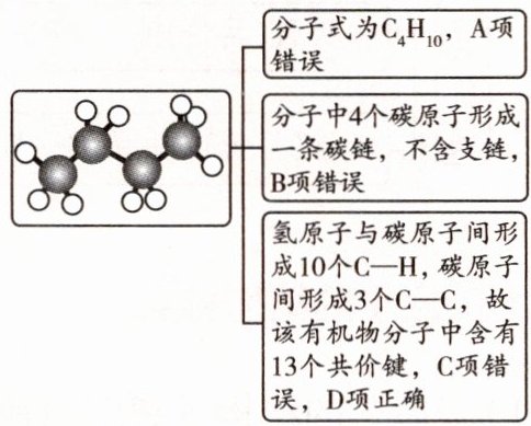 例1-3 (2024北京汇文中学期中)如图是利用碳原子和氢原子搭建的某有机物的球棍模型,其中小球表示碳原子或氢原子,一个小棍表示一个共价键。下列有关说法正确的是