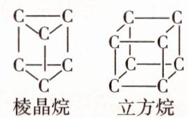 解析▶ 从棱晶烷和立方烷的碳骨架结构可看出,每个碳原子均与另外3个碳原子形成3个C—C单键,故每个碳原子还剩余1个价键,即每个碳原子还需要结合1个氢原子,则棱晶烷和立方烷的分子式分别是C₆H₆和C₈H₈。