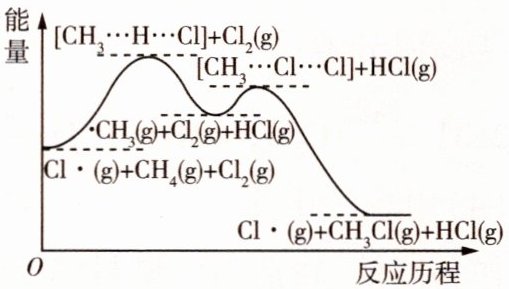 (3) CH₄与Cl₂反应生成CH₃Cl的反应历程、中间态物质的能量关系如图所示。其中Cl·和·CH₃表示自由基(带有单电子的原子或原子团称为自由基),已知自由基之间可以相互结合形成稳定的分子。