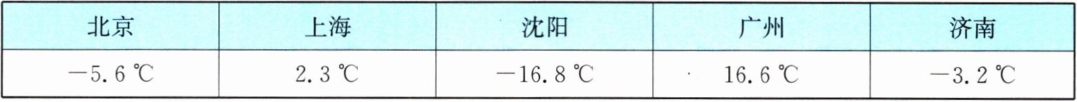 5. 下面是我国五个城市一月份的平均气温,请把它们按从高到低的顺序排列.