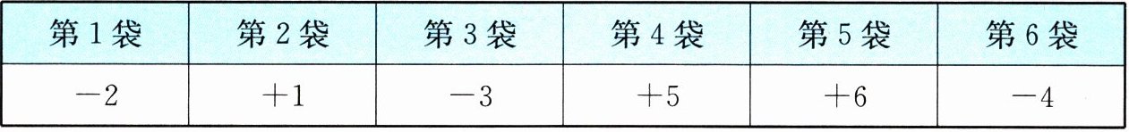 4. 小红买了6袋标注质量为500 g的食品,她对这6袋食品的实际质量进行了检测,用正数记超过标注质量的克数,用负数记低于标注质量的克数,检测结果(单位:g)如下: