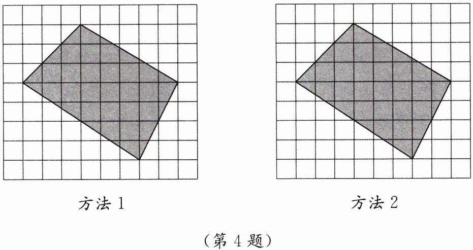 4. 如图,方格纸中每个小正方形的边长都是1,用两种不同的方法求出图中四边形的面积.(请在图中作必要标注并写出必要的计算过程)