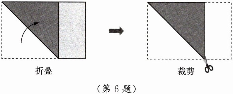 6. 如图是从一张长方形纸片中剪下最大正方形纸片的方法.仿照这个方法,现从一张长方形纸片中剪下最大的正方形纸片,在剩下的长方形纸片中继续剪下最大的正方形纸片……连续剪下3个正方形纸片后,剩下的长方形纸片恰好是正方形纸片.这个长方形纸片宽与长的比可能是多少?尝试画出一种该长方形纸片裁剪线的示意图.还有其他可能吗?