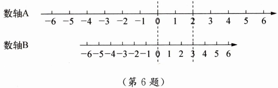 6. 数学活动课上,老师拿出如图所示的两个单位长度不同的数轴A和数轴B模型,当两个数轴的原点对齐时,数轴A上表示2的点与数轴B上表示3的点恰好对齐.数轴A上表示数x的点与数轴B上表示哪个数的点对齐?
