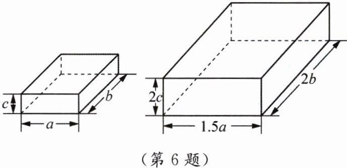 6. 放置在水平地面上的两个无盖(朝上的面)长方体纸盒的大小、形状如图所示.小长方体的长、宽、高分别为a cm,b cm,c cm;大长方体的长、宽、高分别为1.5a cm,2b cm,2c cm.