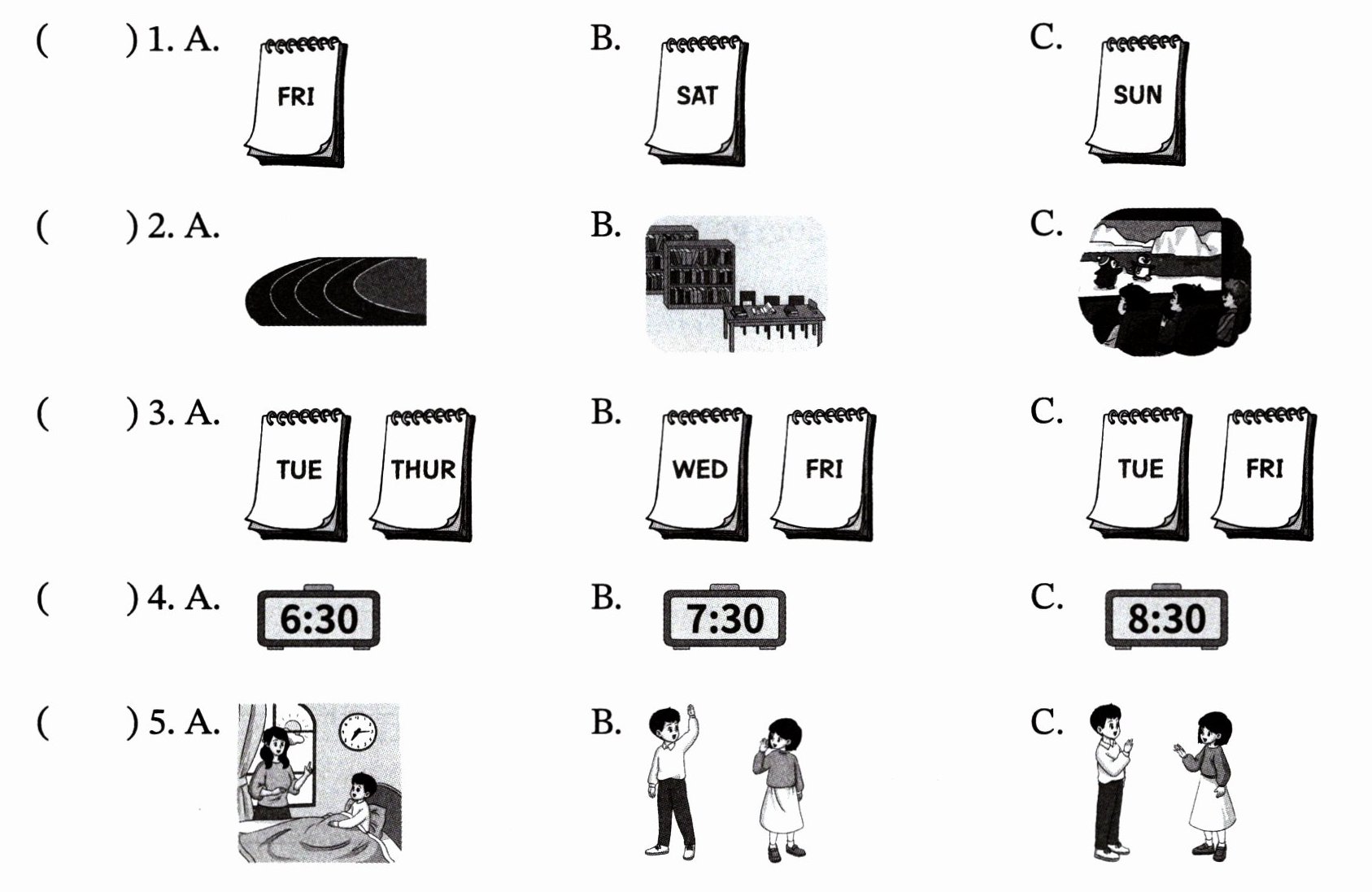 三、听录音,选择与录音内容相符的图片。(听两遍)