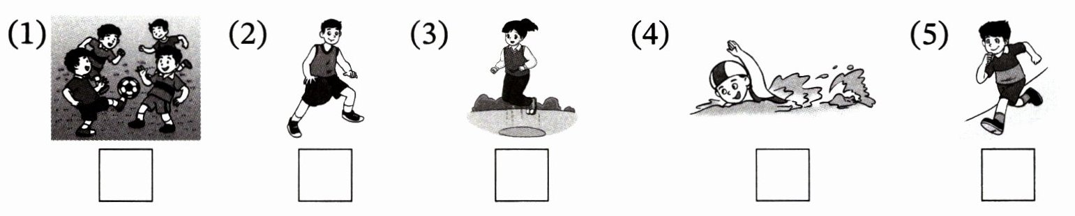 1. 听课本第 32 页的歌谣,在你听到的运动图片下画“√”。