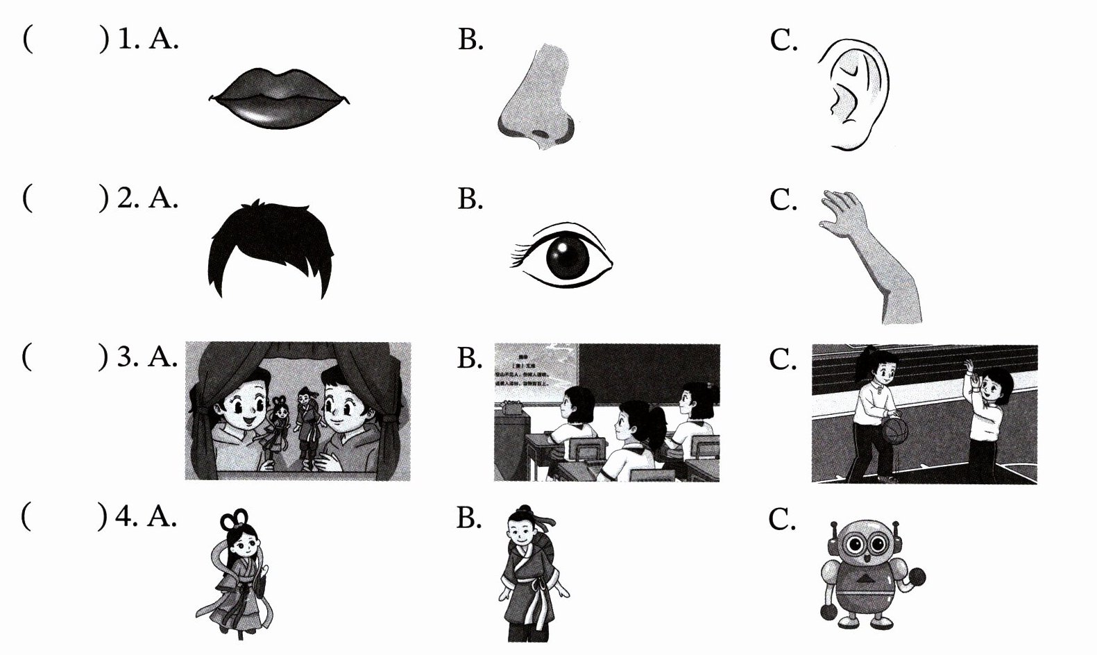三、听录音,选出与录音内容相符的图片。(听两遍)