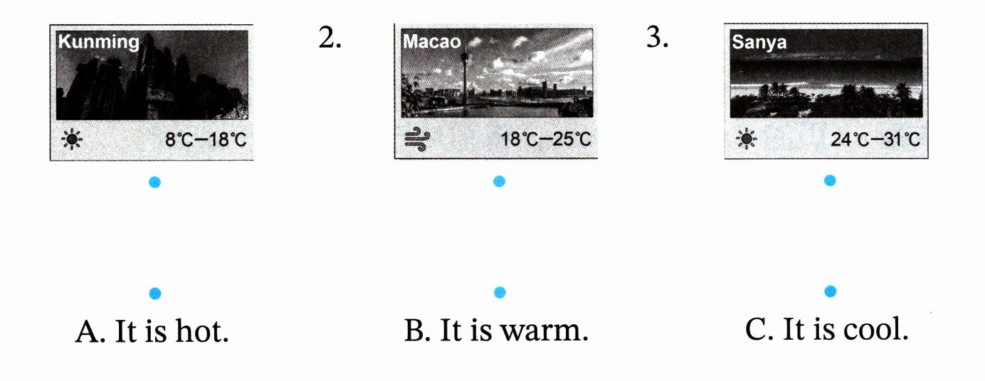 观察课本第 50 页图片,将句子与相应的图片连线。