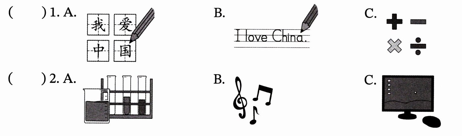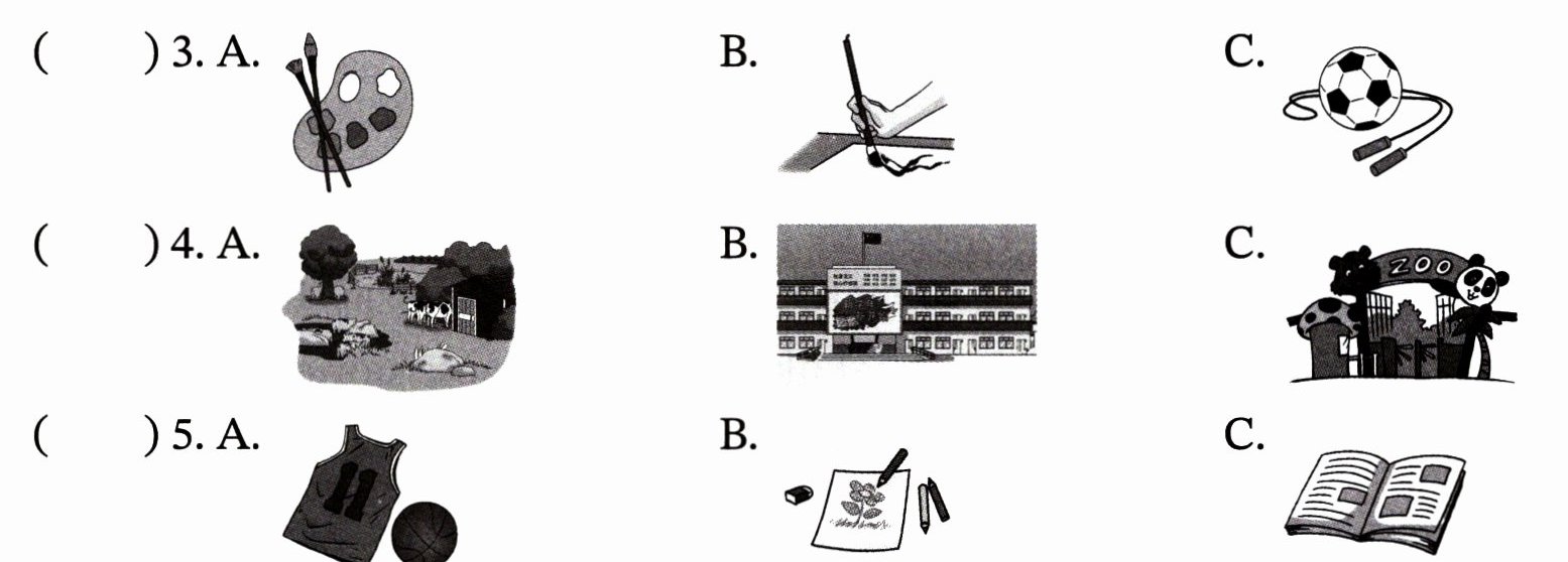 三、听录音,选择与录音内容相符的图片。(听两遍)