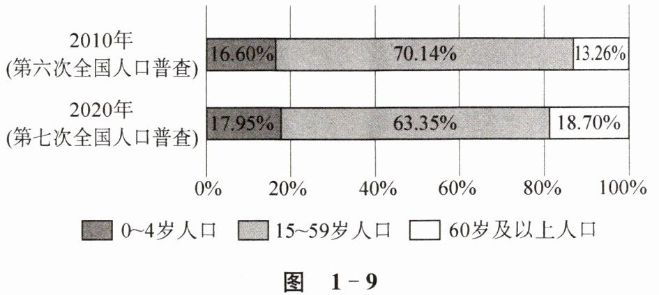 2010年和2020年我国分别进行了第六次和第七次全国人口普查。读图1-9,完成第9~10题。