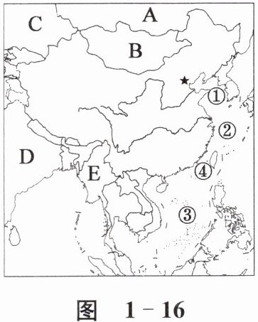 (1) ① 黄海 ② 东海 ③ 南海 ④ 台湾岛