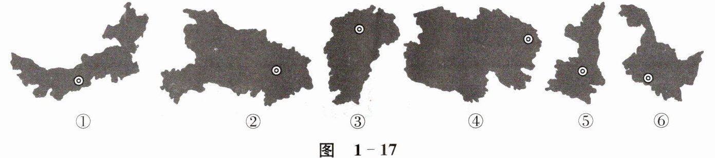 18. 根据我国省级行政区域单位的轮廓特征(图 1 - 17),回答下列问题。