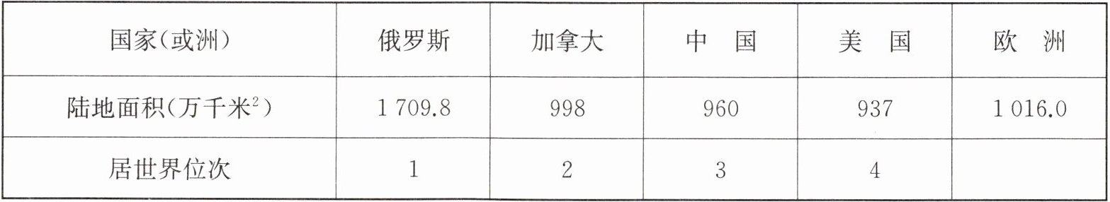 根据上表,我国的陆地总面积是,居世界第位,与洲的面积差不多。