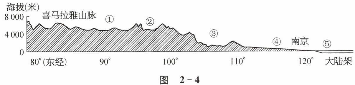 读图 2 - 4“我国沿 $32^{\circ}N$ 线地形剖面示意”,完成第 3~5 题。