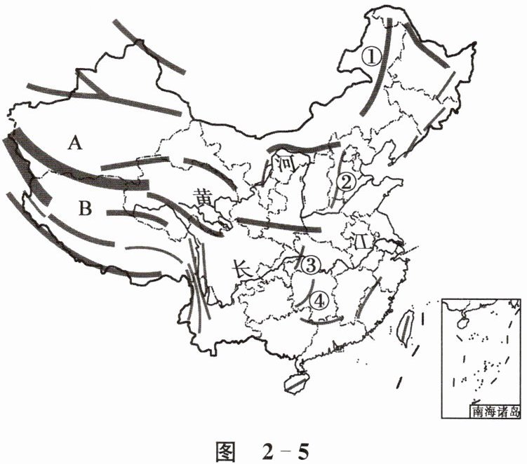 6. 读图 2 - 5“我国主要山脉分布”,回答下列问题。