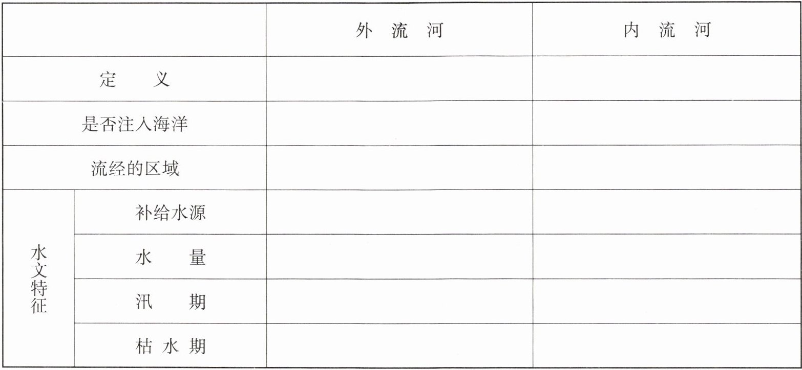 (2) 对比教材第 51 页的图 2 - 37“中国外流区与内流区分布”和教材第 46 页的图 2 - 32“中国季风与非季风区分布”两图,分析影响我国河流水文特征的因素是:。