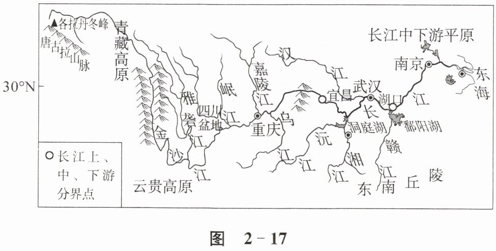 (1)地形:长江流域上游流经地势第一、二级阶梯交界处,落差大;气候:长江流域大部分地区属于亚热带季风气候,降水丰富,河流水量大。