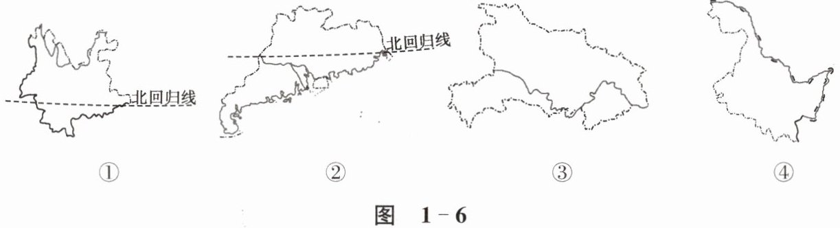 17. 读省级行政区域单位轮廓图(图 1 - 6),回答下列问题。