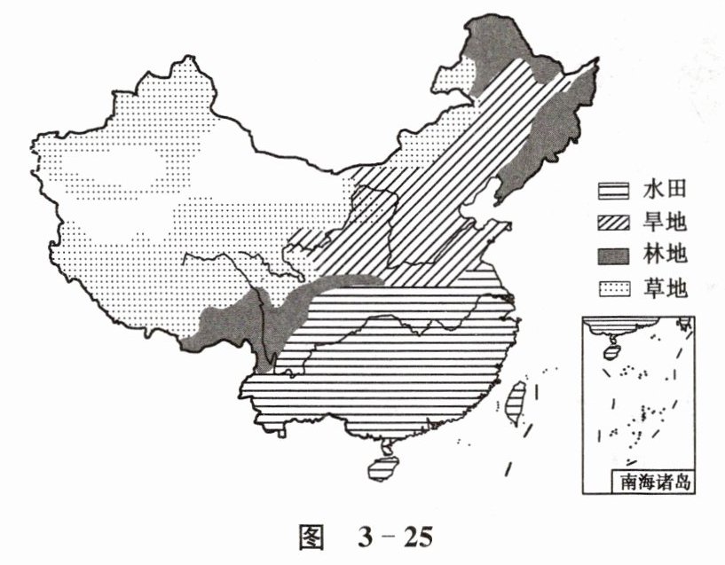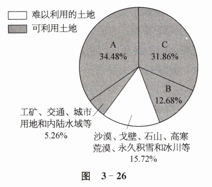 21. 读图3-26“我国土地利用类型的构成”,回答下列问题。