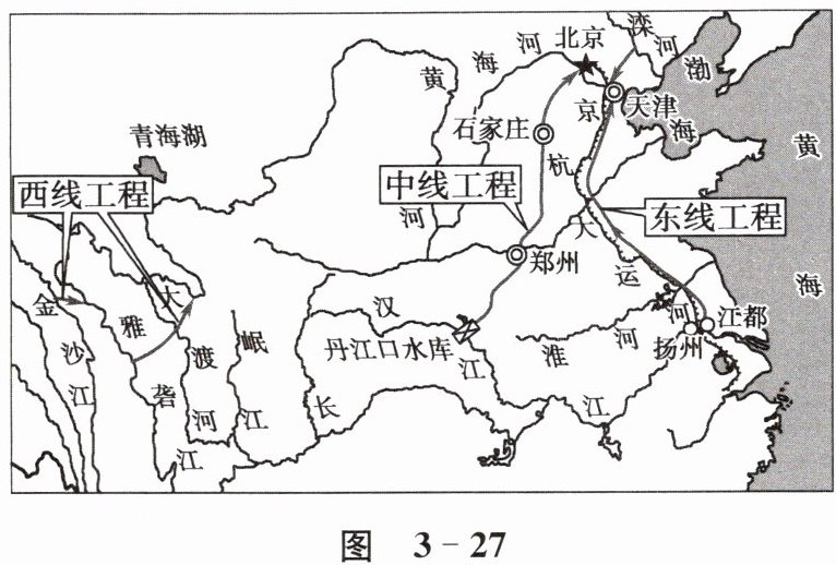 22. 阅读有关南水北调工程的材料和图3-27,回答下列问题。