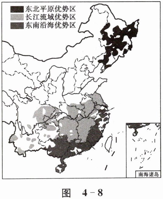 水稻是我国重要的粮食作物,读图 4 - 8“我国水稻优势种植区分布”,完成第 4~8 题。