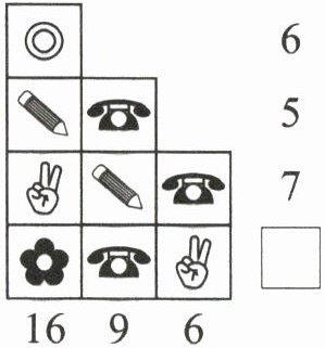 5. 如图,每一行右边的数表示这一行的数之和,每一列下面的数表示这一列的数之和,相同图案代表的数相同,则□里的数是(
