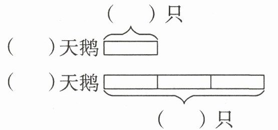 3. 海边湿地公园里有21只黑天鹅,白天鹅的只数是黑天鹅的3倍。
