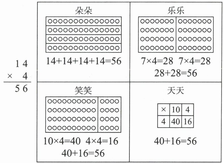 5. 下面是4名同学关于14×4的思考过程,其中合理的有(