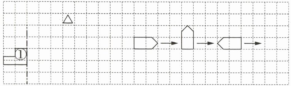 1. 画图(以方格纸中对称轴为基准,找到图形①各顶点对称点,依次连接成轴对称图形,因无法实际画图,操作为:沿对称轴对折能与原图形重合的图形)。