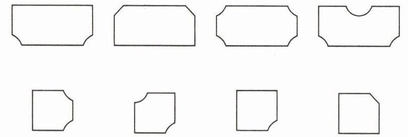 从左往右数,上面一行第一个图形对折后与下面一行第三个图形相连;上面一行第二个图形对折后与下面一行第四个图形相连;上面一行第三个图形对折后与下面一行第一个图形相连;上面一行第四个图形对折后与下面一行第二个图形相连。