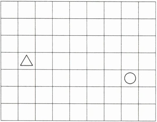 2. 根据△和○现在的位置和规定的走法,在方格图中画出△和○运动的最终位置。(4分)