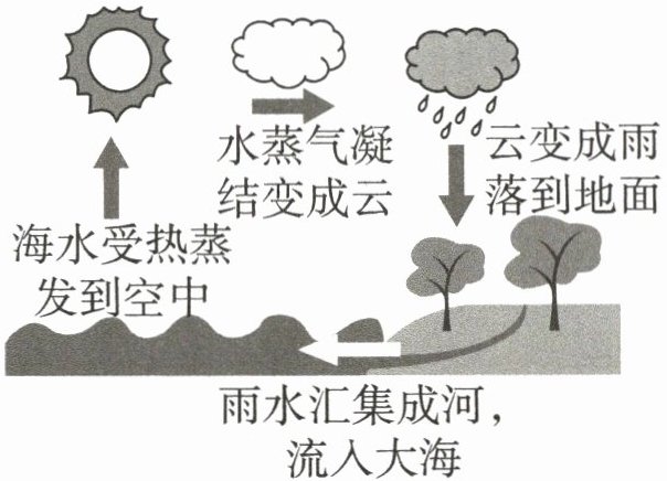 5. 下面是自然界中水循环的简易示意图,水循环是地球的“生命引擎”,每一滴水都在完成它的奇妙旅程。