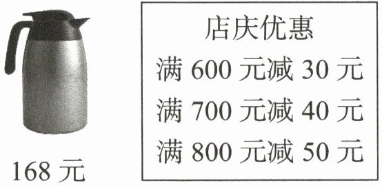 4. 百货商场5周年店庆,李阿姨要替公司购买4个保温壶,需要多少元?(5分)